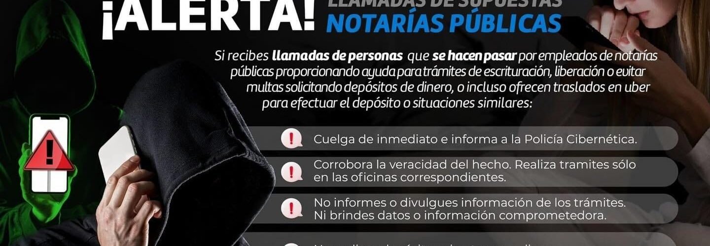 Ante una nueva modalidad de fraude detectada por la Policía Cibernética de la Dirección de Seguridad Pública Municipal, mediante la cual supuestos empleados de notarías exigen dinero para acelerar procedimientos u otros trámites, se alerta a las y los chihuahuenses a permanecer al tanto y así evitar convertirse en víctimas de este ilícito.