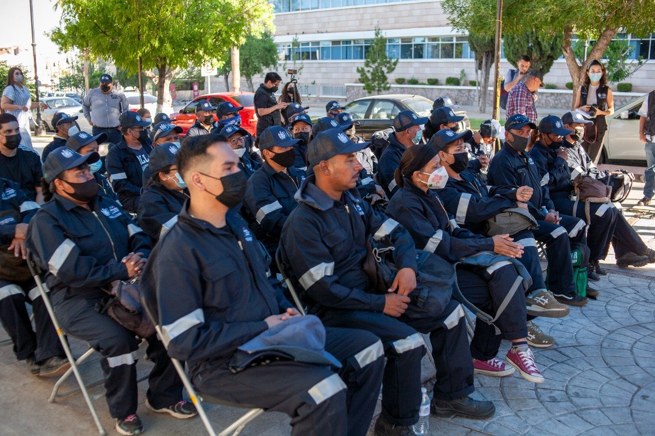 Frente a la Biblioteca Municipal Miguel de Cervantes, el Gobierno Municipal, a través de la Dirección de Desarrollo Humano y Educación, dio inicio al Programa de Ocupación Temporal en su edición 2022, en el que 40 chihuahuenses apoyarán en la limpieza de parques, espacios públicos y calles, así como en otras actividades relacionadas con servicios públicos.