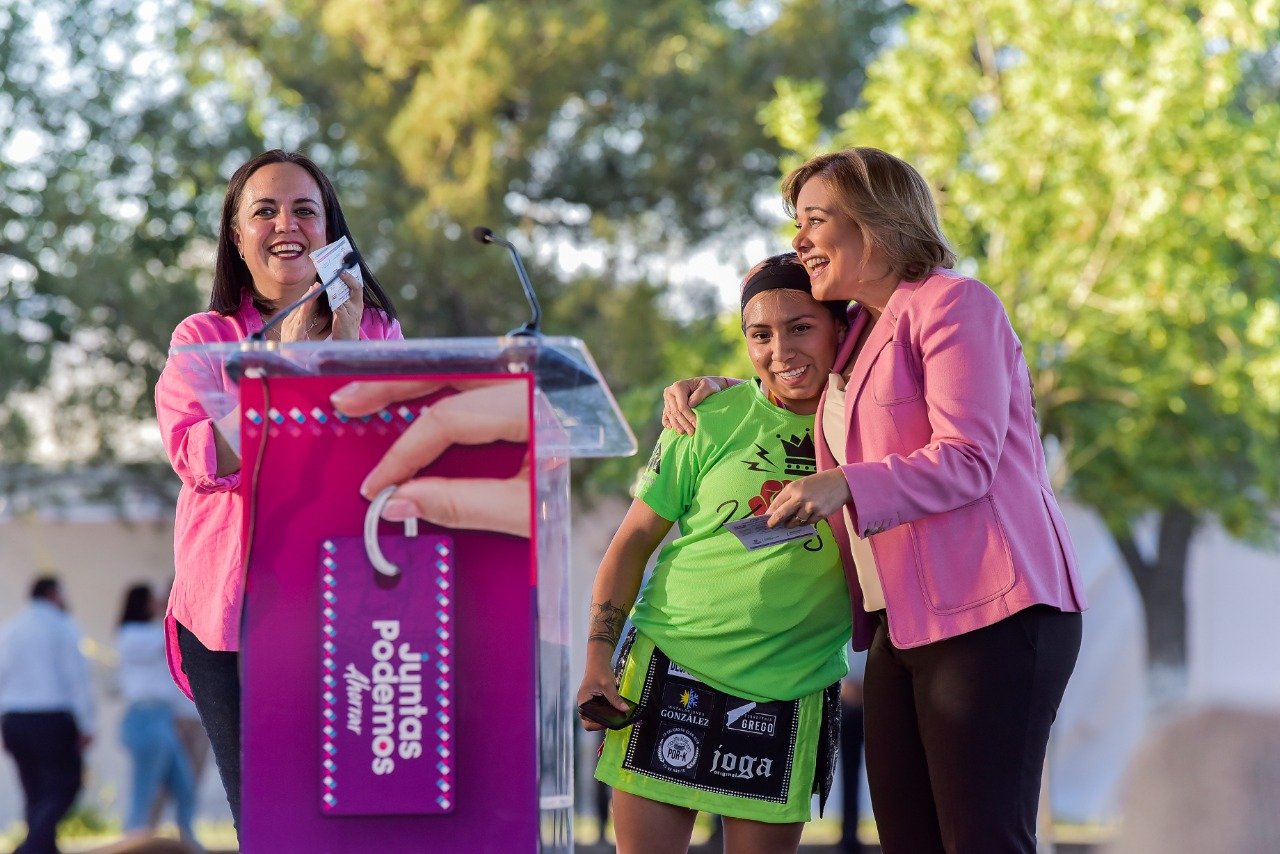 La gobernadora Maru Campos Galván encabezó el arranque del Programa Tarjetas de Descuento para Mujeres “Juntas podemos ahorrar”, en acto que se desarrolló en el Parque de la Familia, en la Colonia Álamos de San Lorenzo.