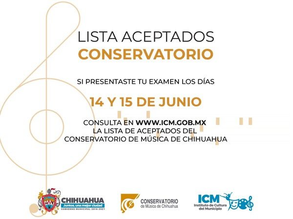 El Gobierno Municipal a través del Instituto de Cultura del Municipio informó que el Conservatorio de Música de Chihuahua dio a conocer la lista de alumnos aceptados...
