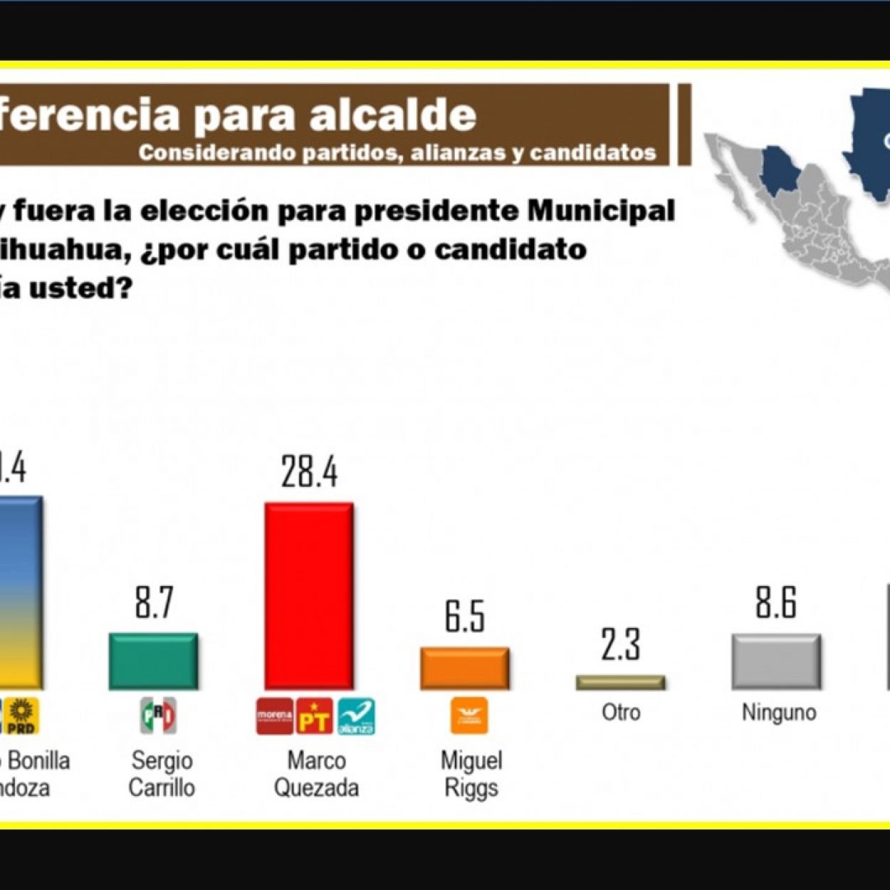 Encuesta en viviendas realizada por CONSULTA MITOFSKY en el municipio de Chihuahua, Chihuahua con miras al proceso electoral para renovar la alcaldía, en este momento...