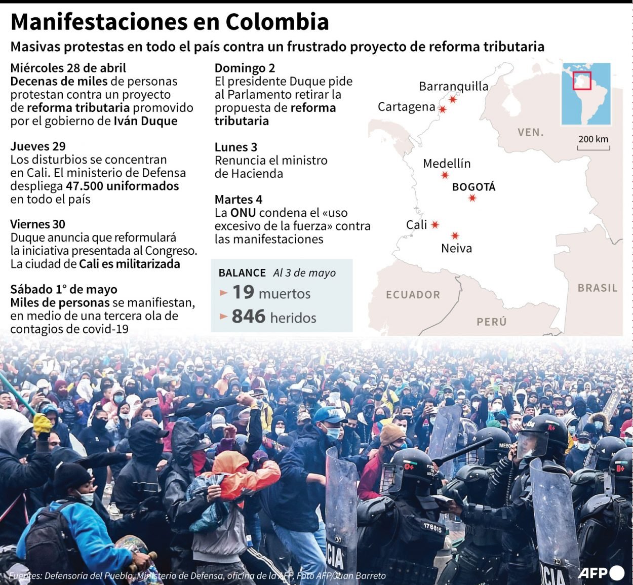 Una reforma tributaria que castiga a la clase detonó el malestar acumulado por la crisis económica y social derivada de la pandemia, varios casos de brutalidad policial...
