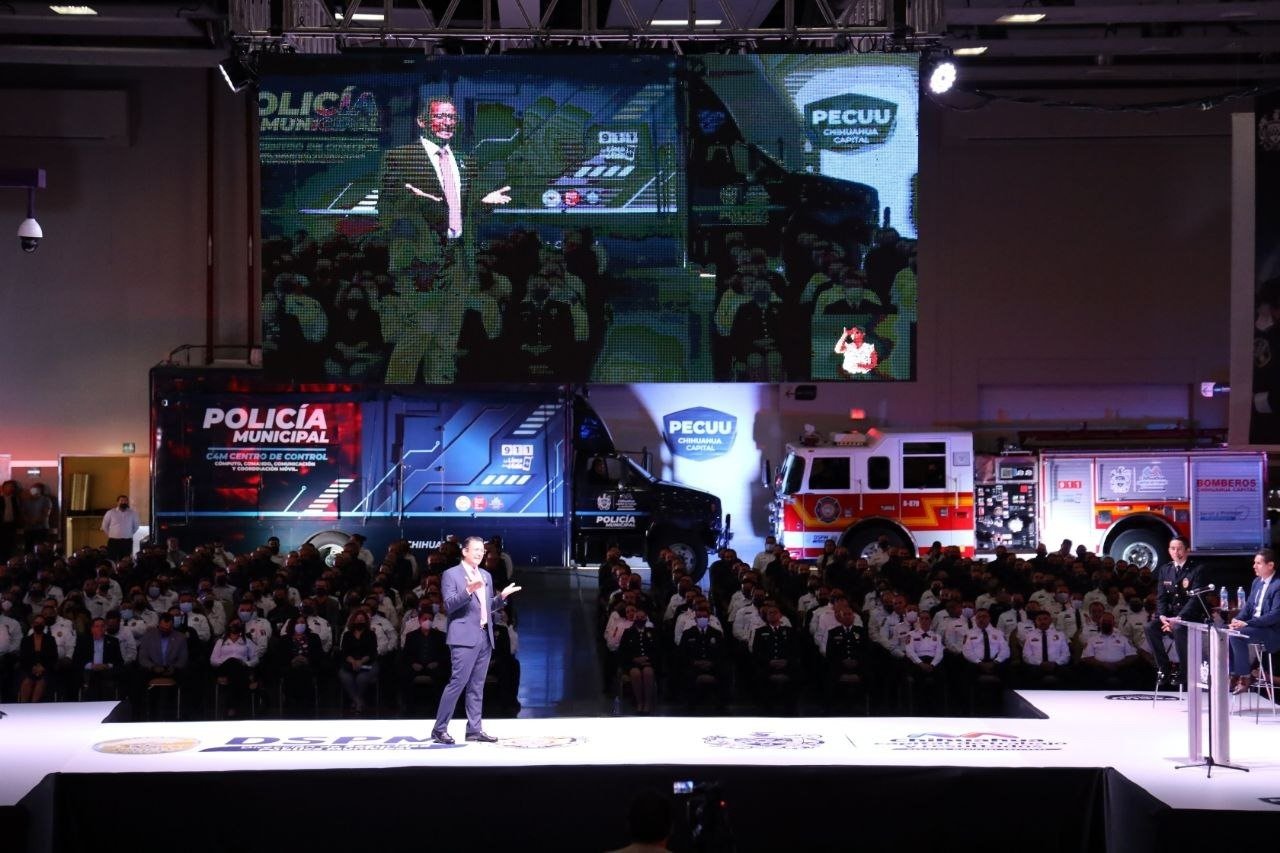 “Chihuahua Capital tiene hoy una corporación policial que responde de frente a los retos que se le presentan; sus filas están conformadas por mujeres y hombres con voluntad de servicio, poseedores de una disciplina que les permite responder sin reservas, aun poniendo su integridad en medio”, dijo el Alcalde.