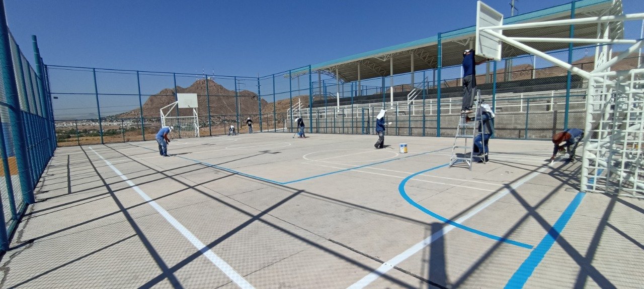 Además, se reparó la malla ciclónica de canchas deportivas, tableros de básquetbol, de hizo demarcación de líneas en canchas de futbol, básquetbol, así como pintura en gradería y muros de 18 unidades deportivas, entre ellas: Huerta Legarreta, Praderas del Sur, Mármol II, Riberas de Sacramento I, II y III, Jardines de Oriente, Camino Real, Punta Oriente, San Felipe, Ponce de León, Unidad Banderas Punta Oriente, Nuevo Milenio, Tarahumara, Wildcats y Nogales.