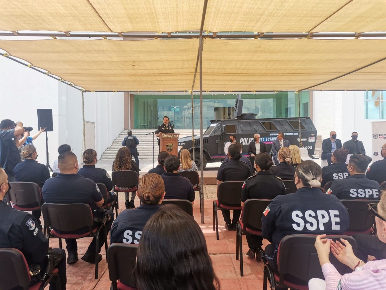 El secretario de Seguridad Pública del Estado (SSPE), Gilberto Loya Chávez, encabezó la ceremonia que dio inició a la entrega de tarjetas al personal de la corporación, con las cuales se otorgarán descuentos en más de 100 negocios afiliados a la Cámara Nacional de Comercio, Servicios y Turismo (Canaco), de la ciudad de Chihuahua.