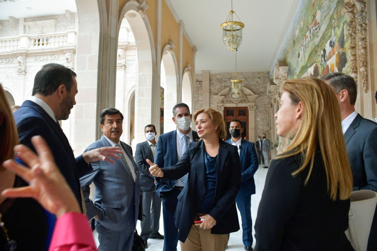 En compañía de la secretaría de Innovación y Desarrollo Económico, María Angélica Granados Trespalacios y el secretario de Seguridad Pública del Estado, Gilberto Loya Chávez, la Gobernadora recibió a José Jaime Gutiérrez Núñez, presidente de la CAMIMEX y a Karen Lucía Flores Arredondo, directora general de la misma; así como a la secretaria de Economía del Gobierno Federal, Tatiana Clouthier Carrillo, para llevar a cabo la sesión del consejo de esta Cámara y así posicionar a Chihuahua en la agenda de acciones a atenderse por parte de la Cámara Minera.
