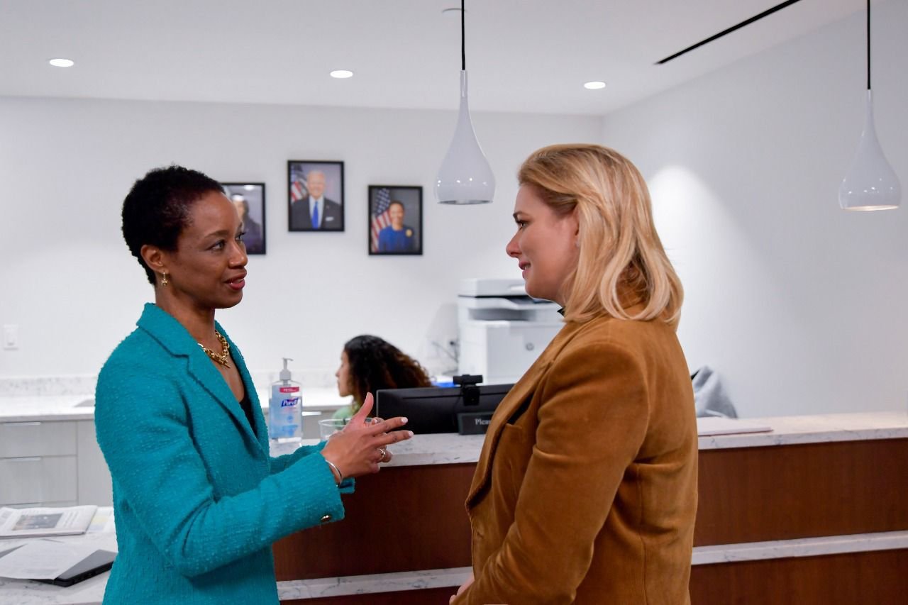 La gobernadora Maru Campos sostuvo una reunión con Enoh Ebog, directora de la Agencia de Comercio y Desarrollo de los Estados Unidos (USTDA) por sus siglas en inglés, y su equipo, en donde expuso el trabajo que realiza el Gobierno de Chihuahua en materia de transporte, tecnologías de comunicación, clima y energías limpias, con la intención de lograr colaboraciones conjuntas a futuro.
