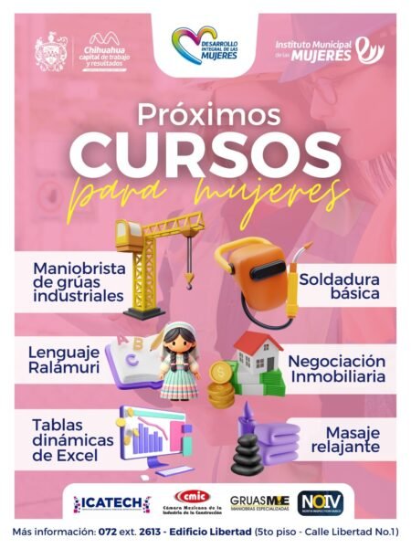 El Gobierno Municipal, a través del Instituto Municipal de las Mujeres, invita a inscribirte a los cursos que estarán próximos a iniciar, los cuales buscan mejorar las oportunidades de empleo, fomentar el emprendimiento y fortalecer la economía local.