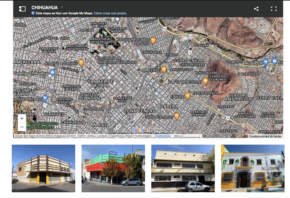 Para su desarrollo, de enero a junio de 2022 fueron visitadas 32 localidades de los municipios de Juárez, Chihuahua, Galeana, Nuevo Casas Grandes, Janos, Ascensión, Guadalupe, Práxedis, Coyame, Ojinaga, Manuel Benavides, Aquiles Serdán, Meoqui, Rosales, Julimes, La Cruz, San Francisco de Conchos y Camargo, de donde se obtuvo el registro de mil 500 inmuebles que se presentan hoy en la página.