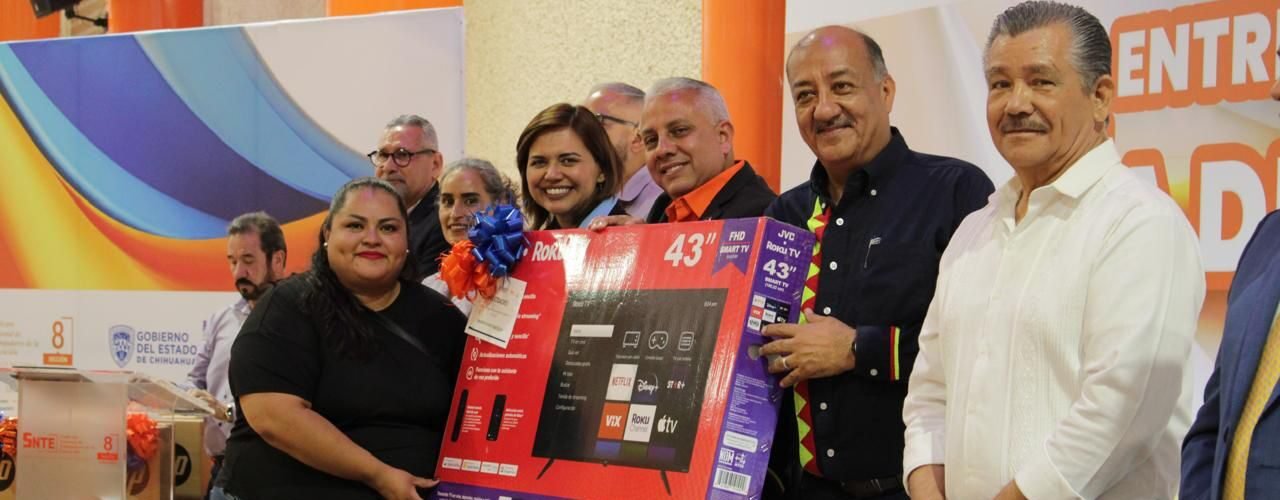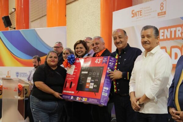 Durante un emotivo evento celebrado en el gimnasio de la Sección 8, se realizó la entrega de 40 laptops, 40 pantallas de televisión y 14 vehículos del año a maestras y maestros provenientes de las 15 regiones sindicales, quienes resultaron ganadores en el sorteo conmemorativo del 15 de mayo.