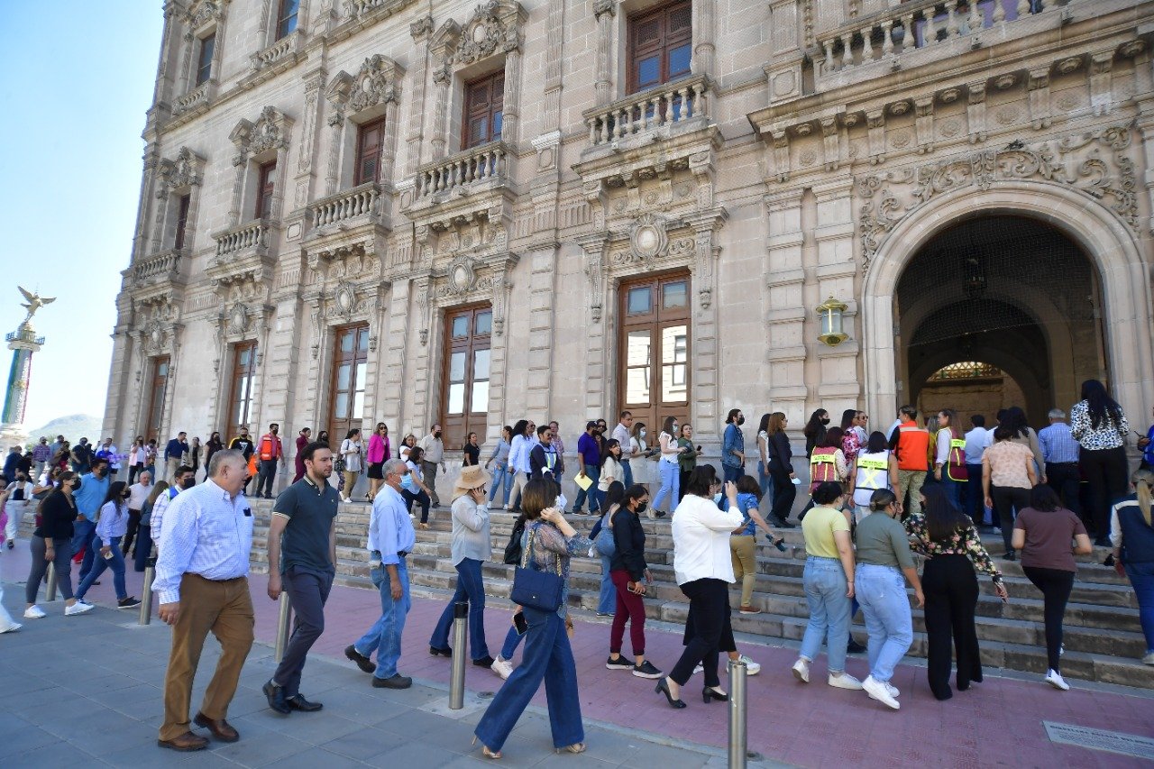 Personal de 24 edificios gubernamentales de la ciudad de Chihuahua, fue evacuado en un lapso de 9 minutos, ante el hipotético registro de un sismo de 6.4 grados en la escala de Richter.
