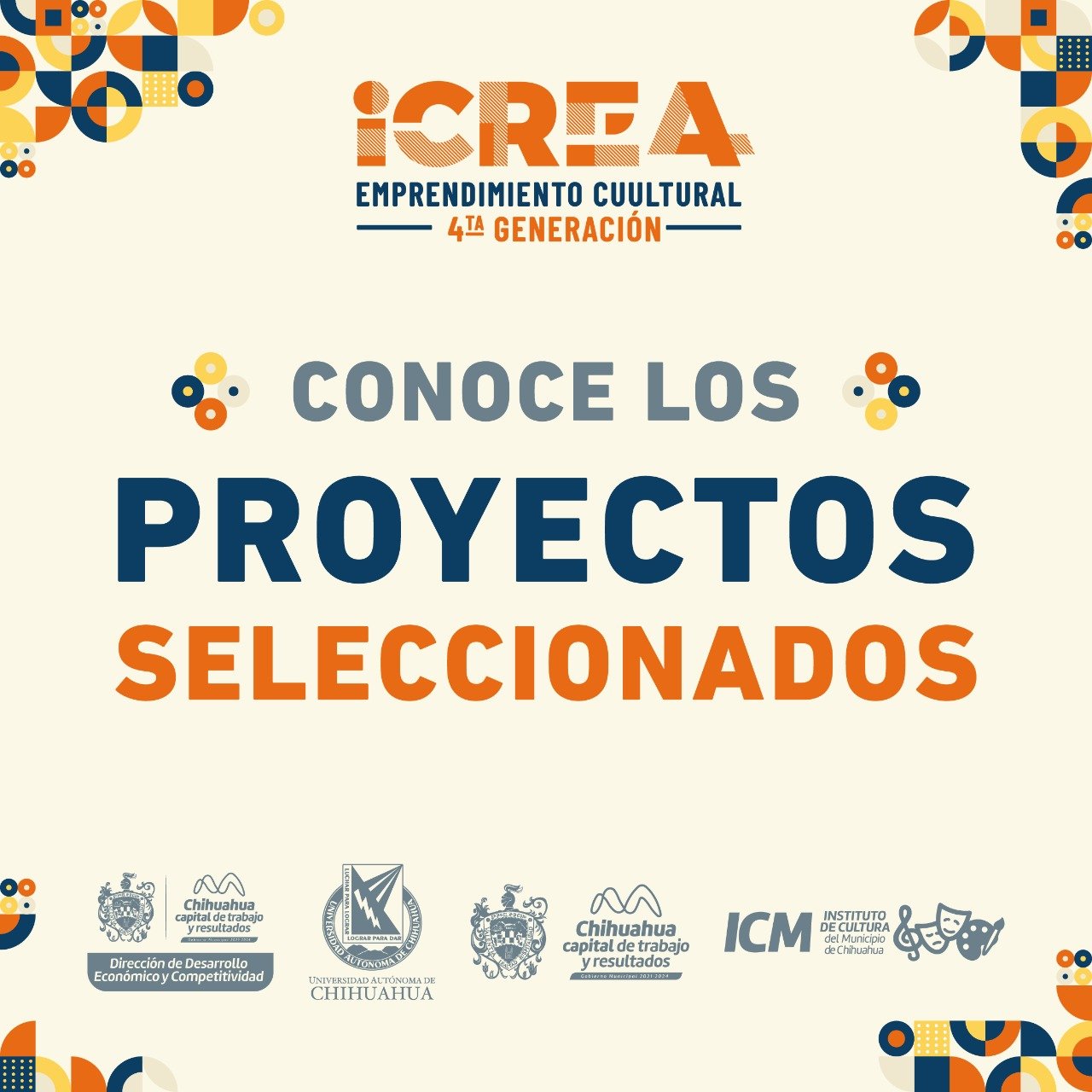 El Gobierno Municipal de Chihuahua, a través del Instituto de Cultura del Municipio (ICM), dio a conocer que la iniciativa iCREA, “Emprendimiento Cuultural”, cuarta generación, realizó la selección de 17 proyectos de los equipos participantes en esta convocatoria dirigida para artistas y creadores, que desean concretar su idea de negocio en materia cultural, por lo que próximamente iniciarán con una capacitación de la mano de expertos.