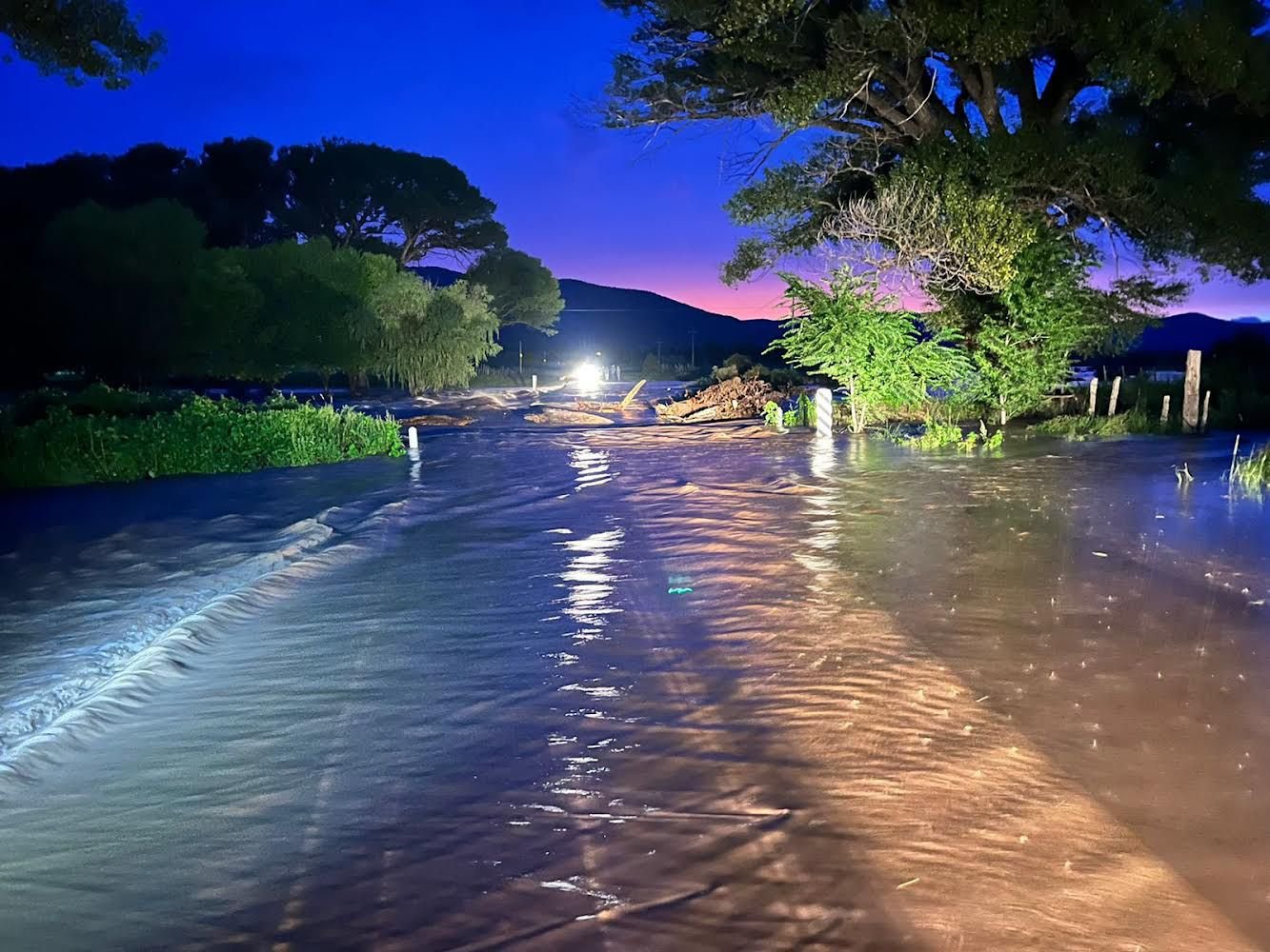 Las lluvias presentadas en los últimos días provocaron la creciente del río que arrastró materiales, árboles y ramas, además del taponamiento del puente y con ello el desborde del cuerpo de agua.