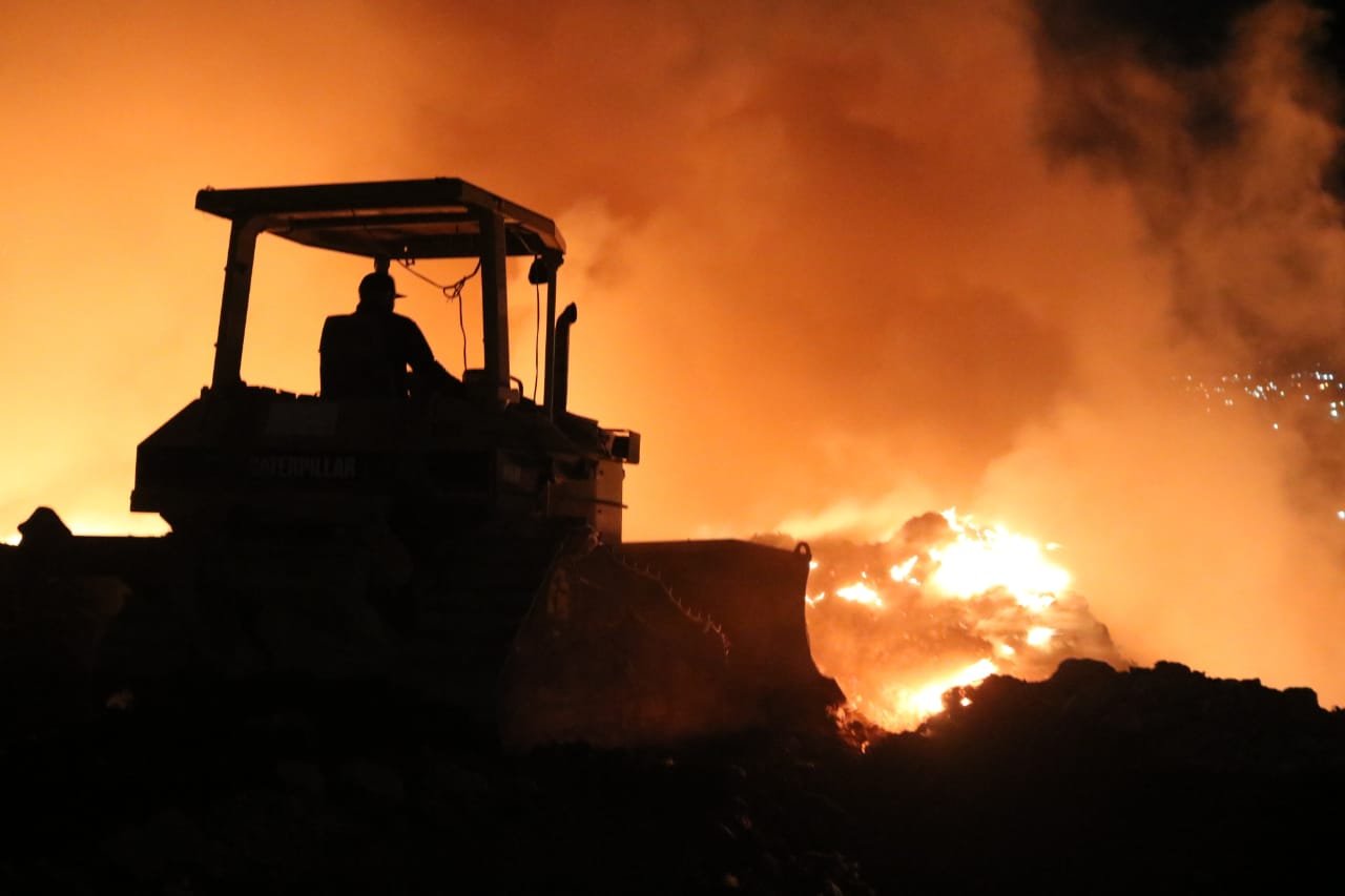 Personal del Gobierno Municipal, logró sofocar el incidente que se presentó este viernes por la noche en las instalaciones del relleno sanitario.