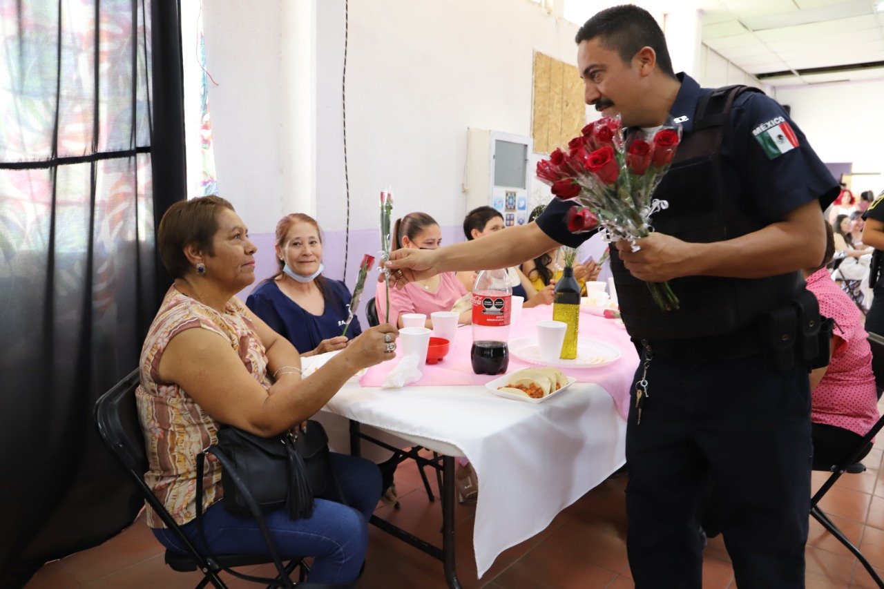 Los agentes preventivos consintieron a las damas y niños presentes llevándoles flores, pastel, alimentos, refrigerios y alrededor de 10 grupos musicales, entre los que destacaron mariachis provenientes del sindicato de músicos que las deleitaron por varias horas el festejo.