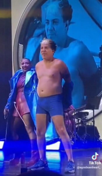 Alejandro Sergi y Juliana Gattas, integrantes de ‘Miranda’, quedaron sin palabras ante la acción de Cristian Castro, pero después procedieron a darle un fuerte abrazo. Los asistentes comenzaron a gritar ante la presentación del mexicano, quien se quedó parado algunos segundos sin ninguna prenda en el torso.