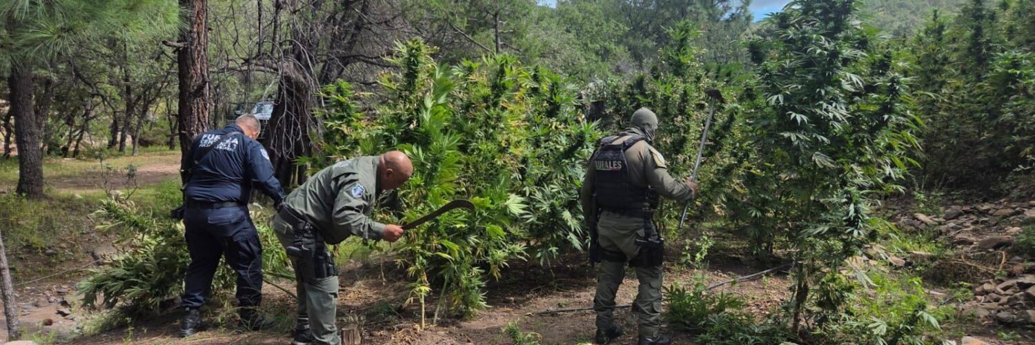 La Secretaría de Seguridad Pública del Estado (SSPE) llevó a cabo la localización y destrucción de tres plantíos de marihuana en la zona serrana del municipio de Guerrero, como parte de los operativos de búsqueda y prevención del delito.