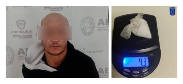 Elementos de la Agencia Estatal de Investigación, adscritos a la Fiscalía de Distrito Zona Occidente, detuvieron en flagrancia en el seccional de Anáhuac, a Jonathan M. R., de 34 años de edad, en posesión de la droga conocida como cristal.