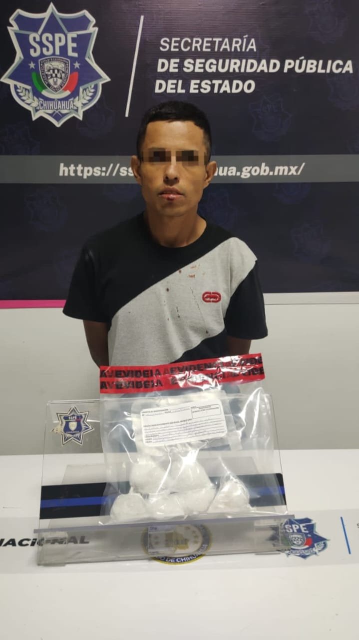 Elementos de la Secretaría de Seguridad Pública del Estado (SSPE), adscritos a la Zona Norte, detuvieron en Ciudad Juárez a un sujeto que sorprendieron en posesión de 147 gramos de la droga conocida como “cristal” valuada en más de 40 mil pesos.