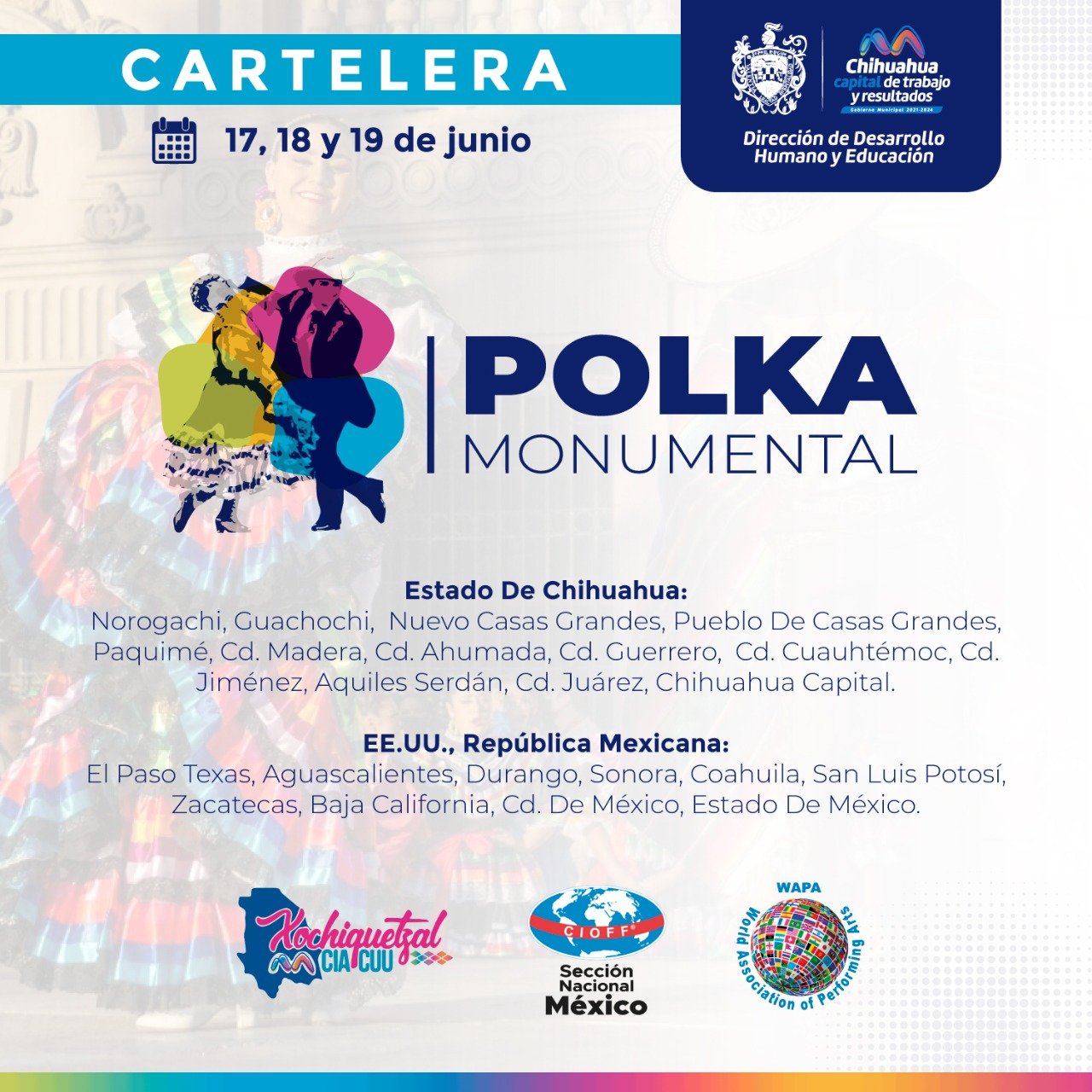 Con la finalidad de promover el patrimonio artístico y cultural, el Gobierno Municipal, a través de la Dirección de Desarrollo Humano y Educación, invita a las familias a asistir a los eventos gratuitos que se llevarán a cabo este fin de semana, del 17 al 19 de junio, en el evento Polka Monumental 2022.