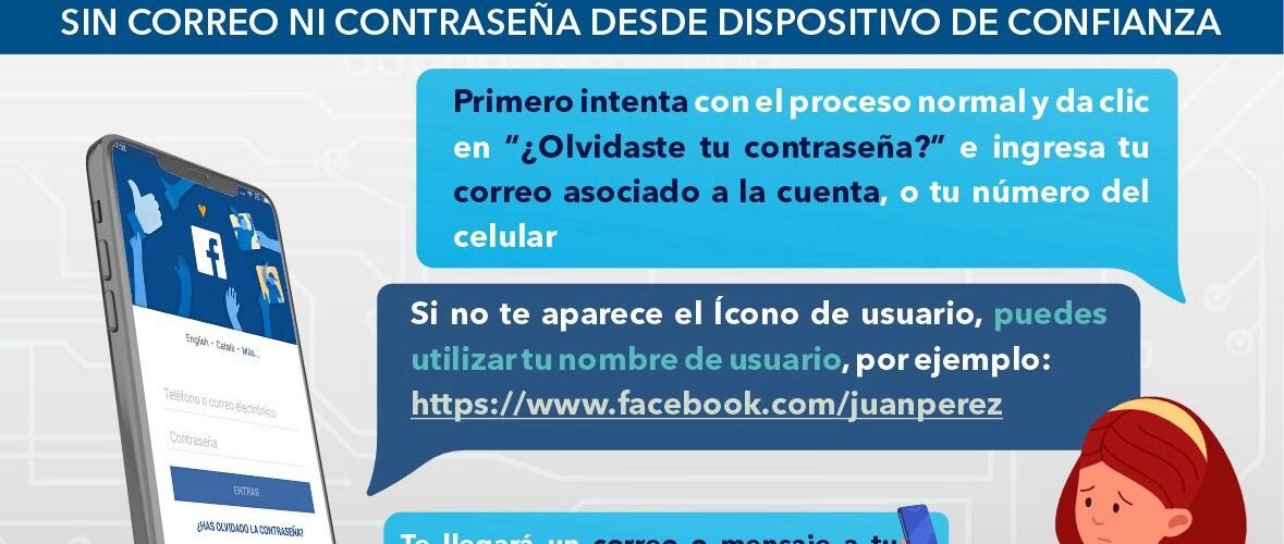* Recuperar cuenta si olvidaste tu correo o número de celular: Ingresa a facebook.com/login/identify, escribe el dato que sí recuerdes (correo o celular) para recibir un código de acceso.