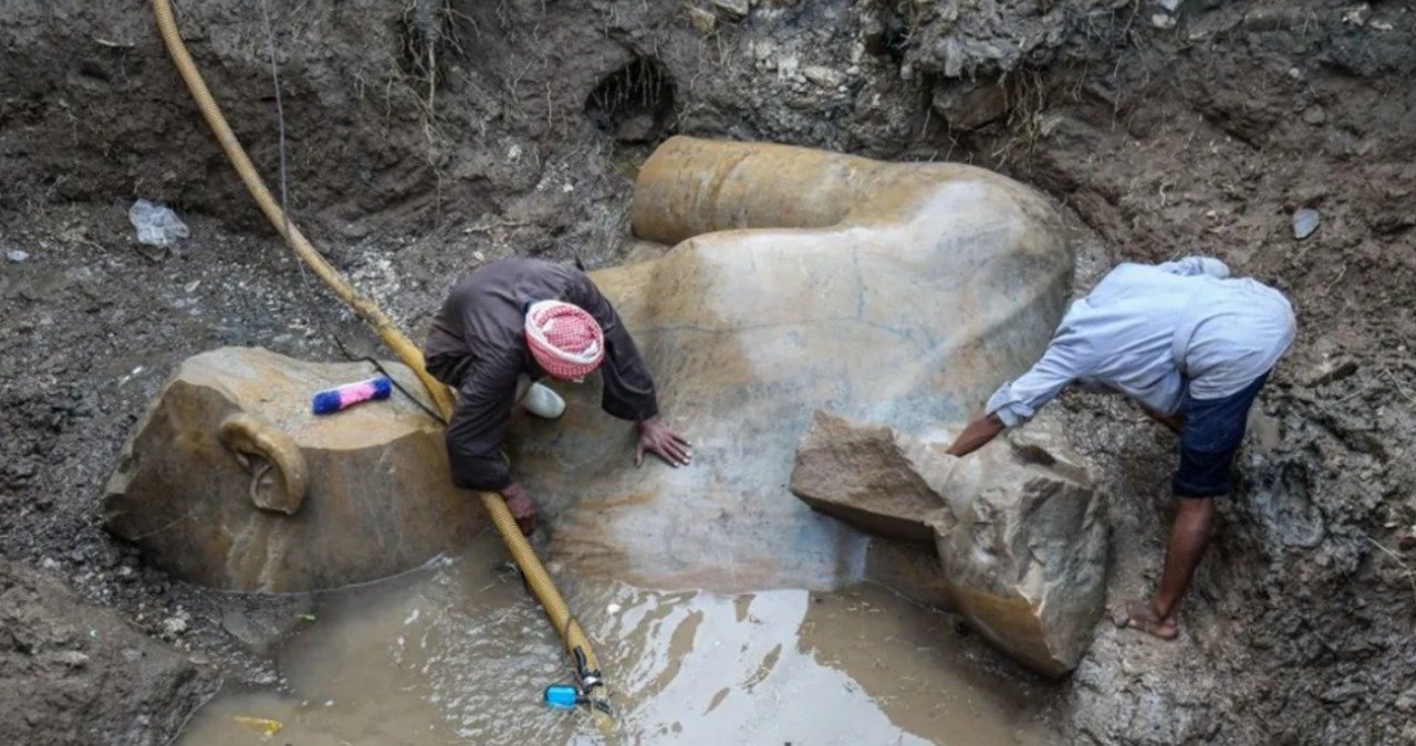 Casi 3000 años después de su gran reinado, se encontraron partes de una enorme estatua de roca de cuarcita de 8 metros de Ozymandias, ahora conocido como el faraón Ramsés II, enterrada boca abajo en el barro de los suburbios de El Cairo.