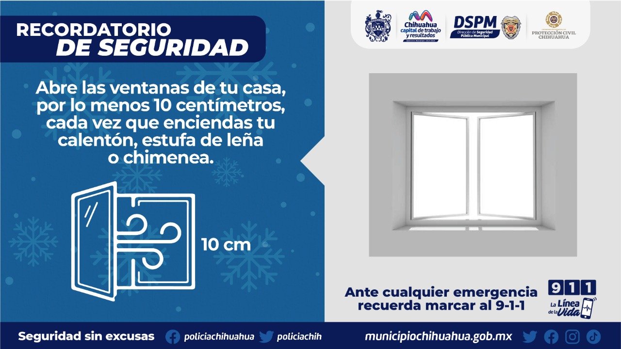 El Gobierno Municipal a través del Heroico Cuerpo de Bomberos, exhorta a los chihuahuenses a seguir recomendaciones preventivas para evitar accidentes derivados del uso de calefactores a gas, que producen monóxido de carbono, son susceptibles a fugas y podrían generar incendios o intoxicaciones dentro de los hogares o establecimientos.