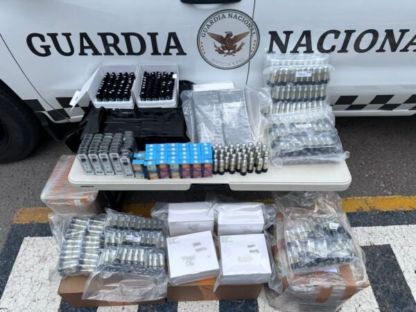 En cumplimiento de la Estrategia Nacional de Seguridad Pública del gobierno federal, en el estado de Chihuahua, integrantes de la Guardia Nacional (GN) aseguraron cuatro cajas de cartón que contenían más de 1,200 cartuchos para cigarro electrónico, elaborados a base de posible hachís.