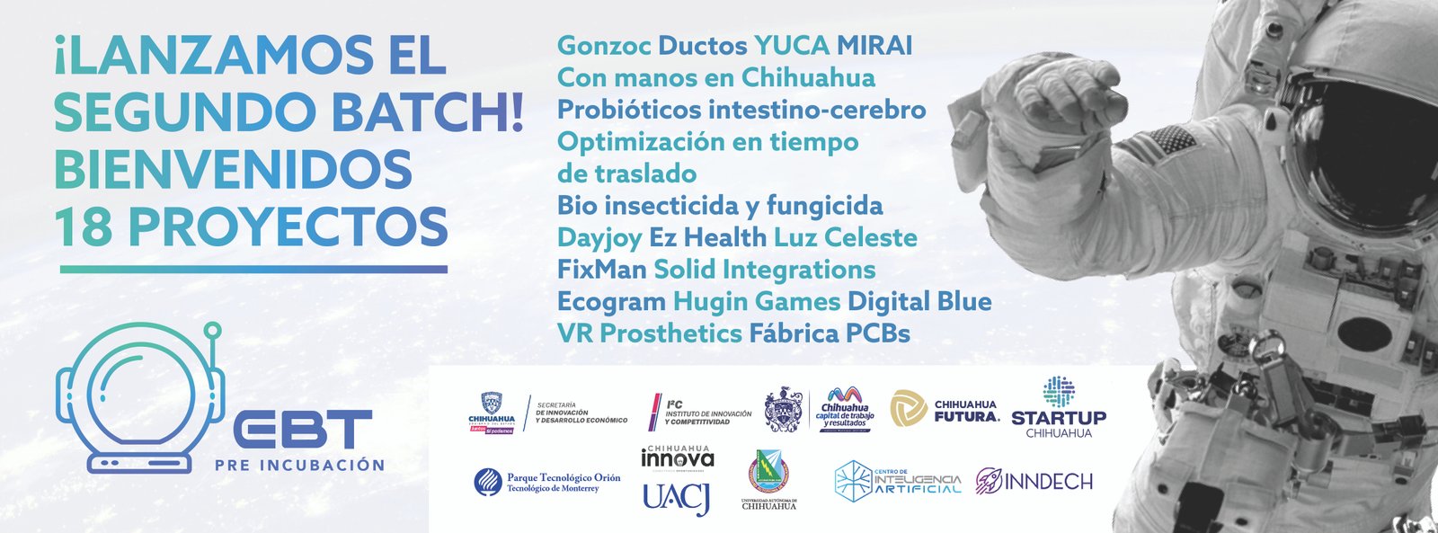 Este programa asegura por medio del ecosistema de Startup Chihuahua, que al menos 18 proyectos cuenten con las condiciones propicias para iniciar su desarrollo tecnológico y modelo de negocios.