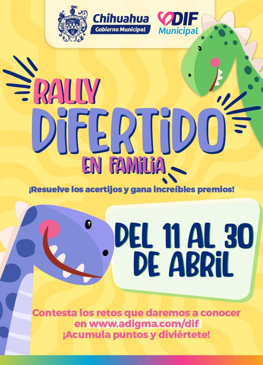 Para celebrar el Día de la Niñez, el Gobierno Municipal, a través del DIF Municipal invita a las niñas, niños y adolescentes de Chihuahua capital a participar en el rally virtual: “DIFertido”.