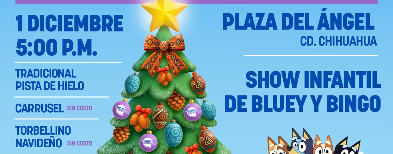 El Gobierno del Estado invita a las y los chihuahuenses, a disfrutar del tradicional encendido del Árbol de Navidad, que se llevará a cabo en la Plaza del Ángel este 1 de diciembre.