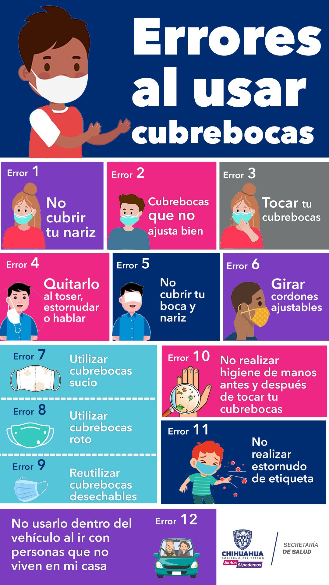 La Secretaría de Salud exhorta a la ciudadanía a seguir practicando las medidas de prevención para evitar el incremento de casos por COVID-19 en el estado de Chihuahua, como es el uso correcto del cubrebocas.
