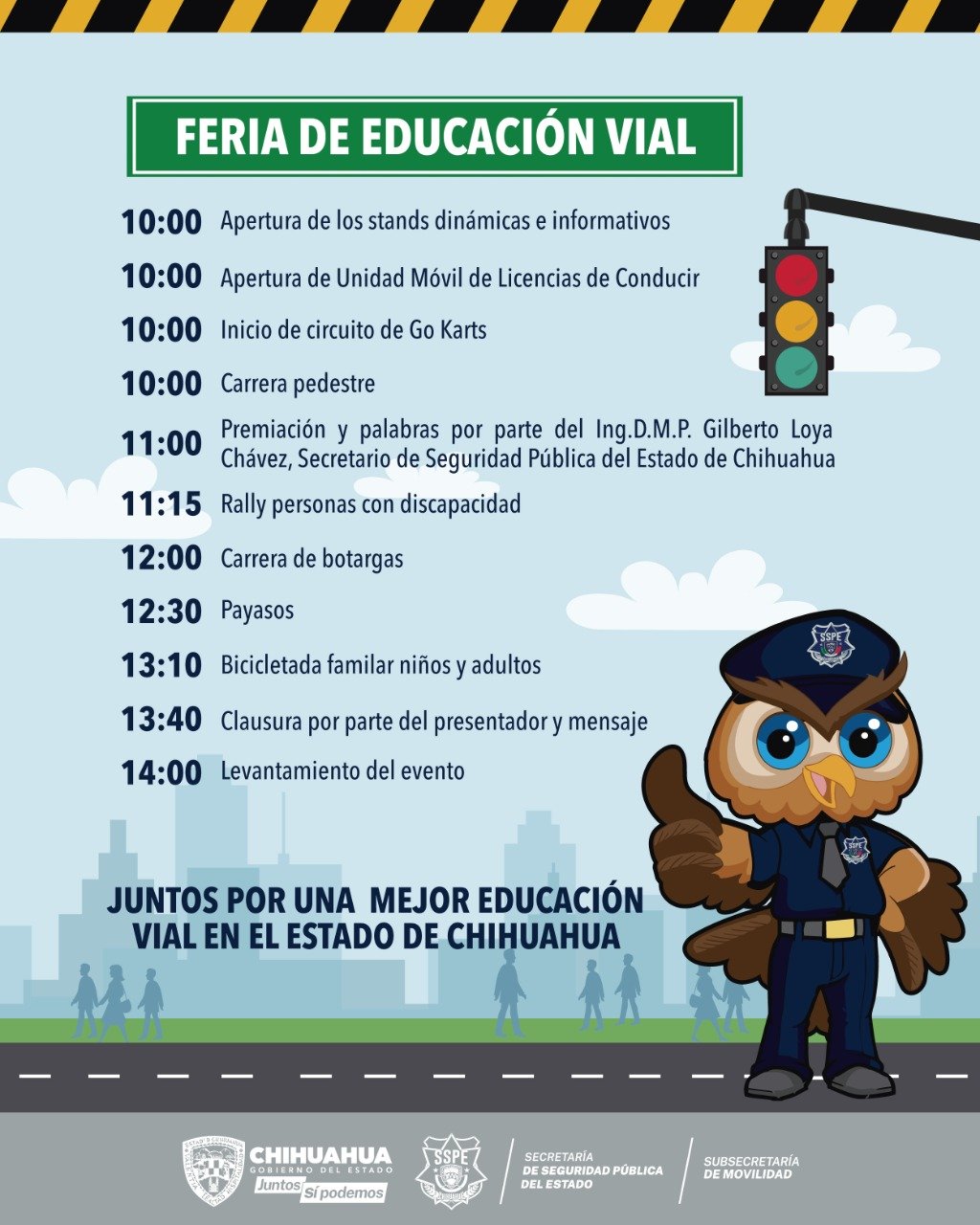 “Invitamos a todas las y los ciudadanos a darse una vuelta este domingo a La Primera Feria de la Seguridad Vial, donde podrán pasar un momento agradable en familia, aprendiendo sobre la importancia de la cultura y educación vial, que no solo es responsabilidad de las personas con vehículo, sino de cualquier persona que se desplaza dentro de la ciudad. Juntos por una educación vial de calidad en el estado de Chihuahua” comentó Adrián Lui, director de Movilidad y Cultura Vial.