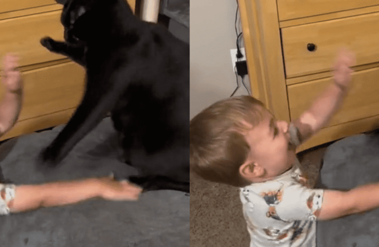 En la grabación se puede ver al pequeño muy contento jugando a la pelea con su gato negro por lo que, moviendo sus manos ambos protagonizaron un dulce pleito, en la que se lo vio muy felices por tenerse el uno al otro. Esa es la razón, para que la madre del niño se derritiera de amor con la escena que estaba presenciando y decidió documentarlo con su celular para luego subirlo a su cuenta personal.