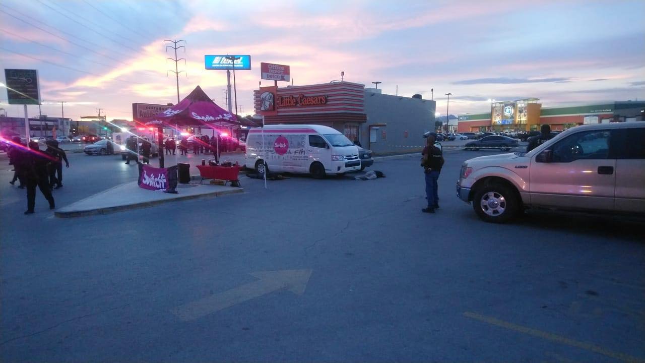 Eran cuatro empleados de Mega Radio los que asesinaron a balazos afuera del Little Caesars de Ejército Nacional y Rancho Mesteñas. Los cuerpos quedaron en el estacionamiento del centro comercial. Municipales, estatales y militares resguardan el lugar.