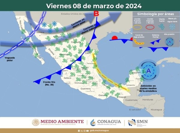 Para esta tarde se prevén precipitaciones en Janos, Casas Grandes, Madera, Temósachic, Guerrero, Ocampo y Bocoyna, mismas que pueden estar acompañadas de caída de aguanieve y/o nieve ligera en las partes altas de la zona serrana.
