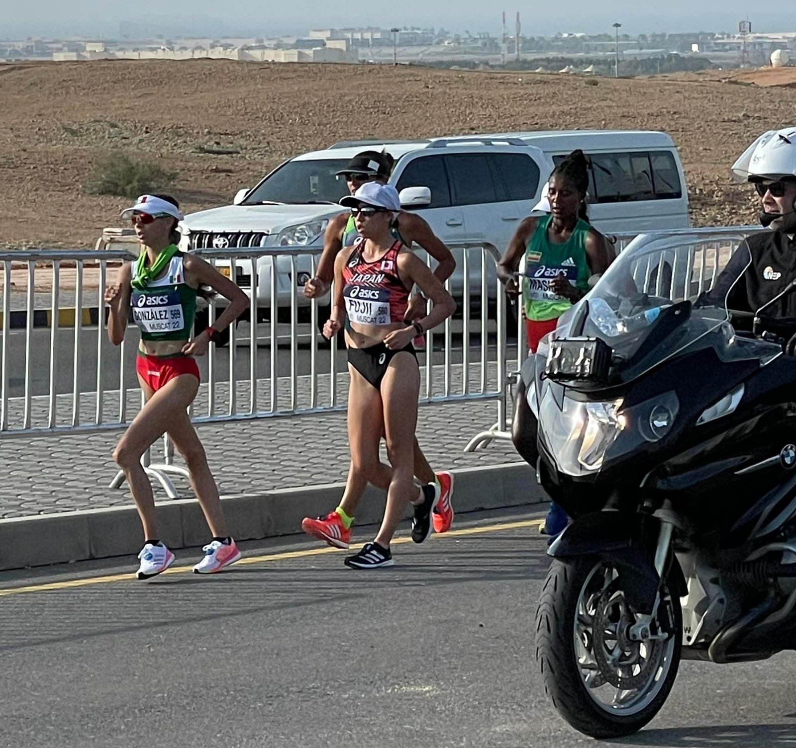 Con un tiempo de 1:32:45, la atleta olímpica finaliza en cuarto lugar la prueba de 20 kilómetros femenil en Muscat, Omán; la chihuahuense terminó detrás de la peruana Kimberly García, quien se llevó el bronce