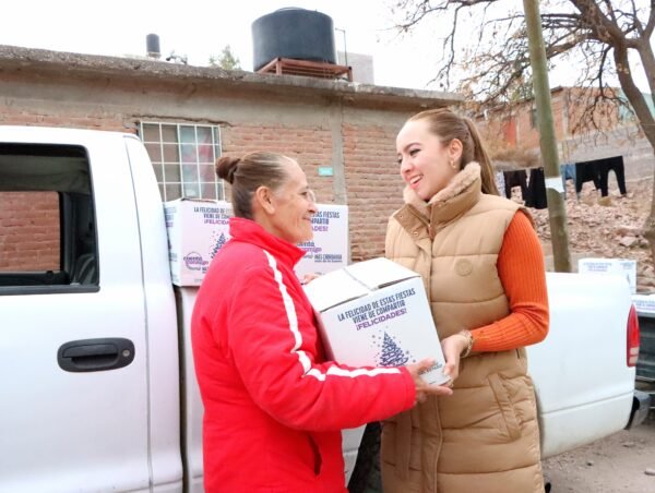 La diputada del Partido Acción Nacional (PAN), Carla Rivas acudió a las colonias R. Almada y Ampliación Universitaria a fin de conversar con los vecinos y hacer la entrega de apoyos alimentarios.