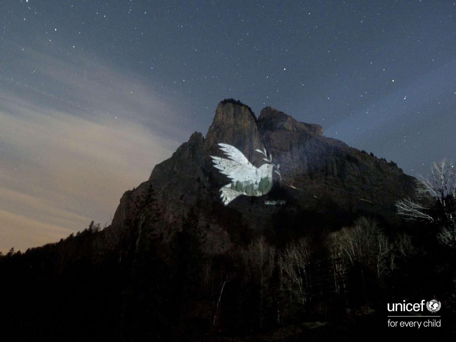 La mayor proyección del mundo de una paloma ha iluminado una montaña suiza.