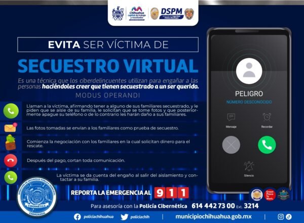_La Policía Cibernética de la Dirección de Seguridad Pública Municipal (DSPM), advierte a la población por “secuestros virtuales”, modalidad de delinquir donde se amenaza a personas vía telefónica y extorsionarlas monetariamente, o para obtener datos personales, por lo que emite recomendaciones para evitar ser víctima de ellos.