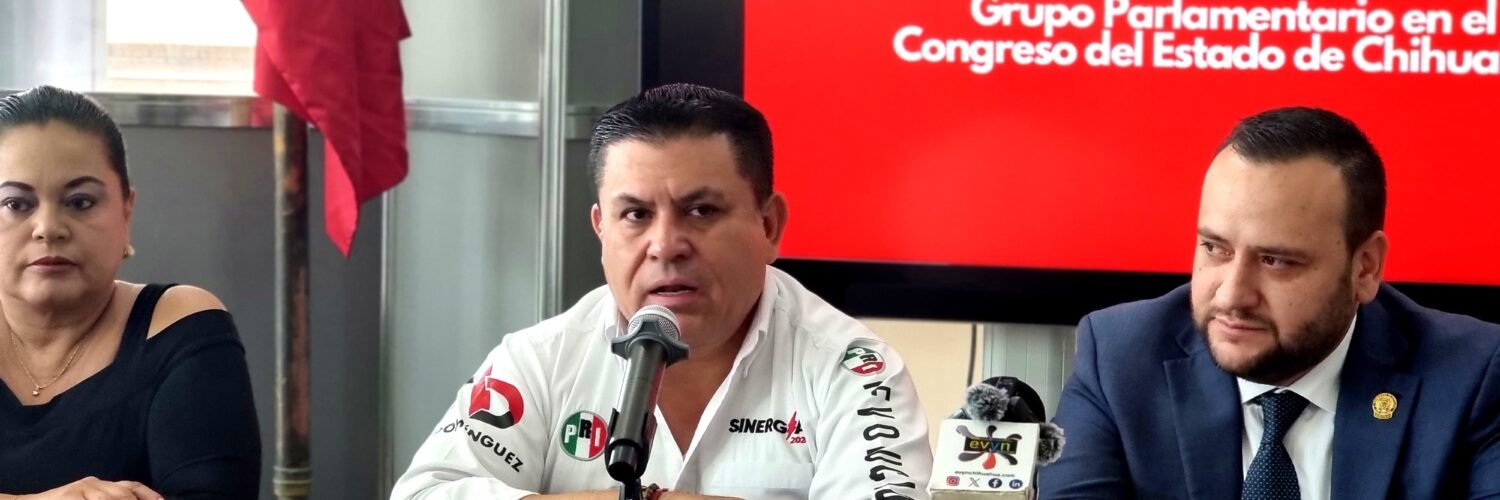 El dirigente estatal del PRI en Chihuahua, Alejandro Domínguez, acompañado por los diputados locales del revolucionario institucional, manifestó su firme postura ante la incongruencia del discurso de austeridad promovido por Morena, el cual ha resultado ser una simulación.