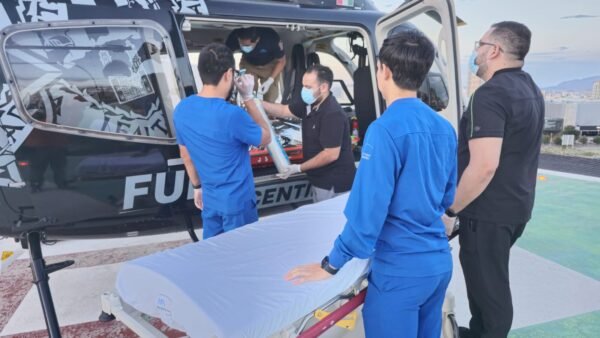 Ante las múltiples heridas que presentaba, se desplegó un operativo en conjunto para movilizarlo vía aérea al Hospital Ángeles, en Chihuahua capital, con el fin de brindarle atención especializada.