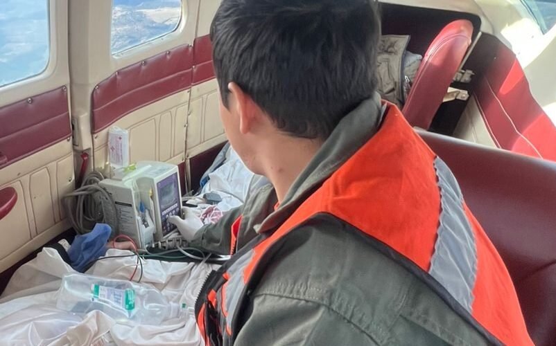 Debido a la gravedad de su estado, personal medico voluntario de la CEPC acompañó a la joven para brindarle en todo momento atención a bordo de la aeronave de la SSPE, la cual fue piloteada por personal de la misma dependencia.