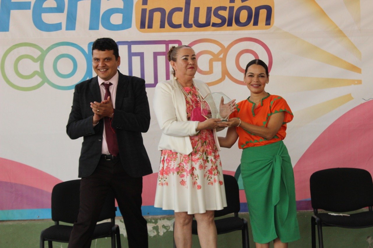 Al evento asistieron la presidenta del DIF Municipal, Karina Olivas, quien entregó dicho distintivo al personal representante de este plantel; la directora de Desarrollo Humano y Educación, Mónica Herrera; el subdirector de Rehabilitación del IMPAS, Fernando Ponce Ramírez; la directora de la Escuela Secundaria Federal número 1, Rita Justina Montes Núñez; y el supervisor de la zona número 8 de Secundarias Federales, Gustavo Soto Fernández.