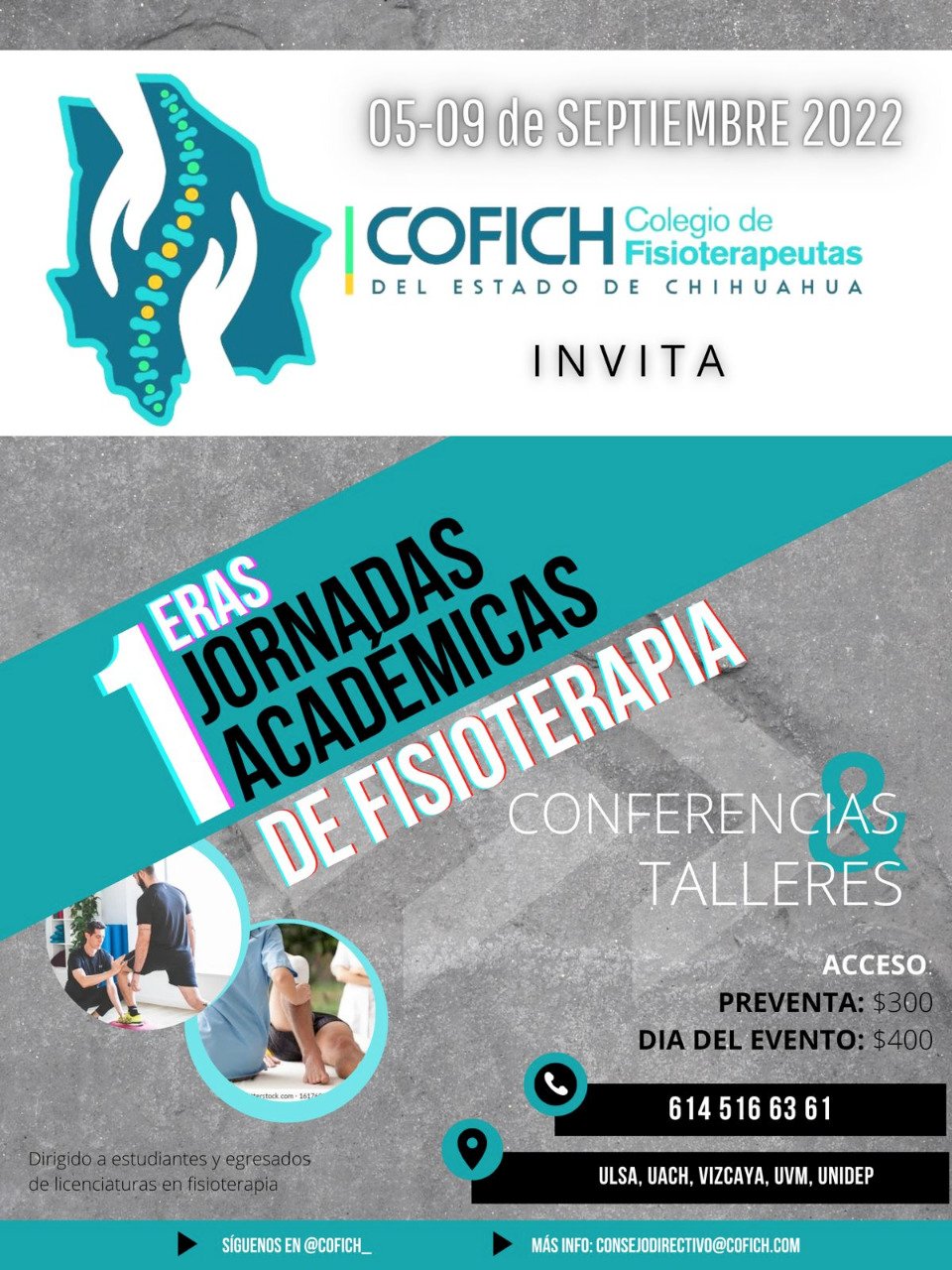 Los interesados en acudir a las Jornadas Académicas de Fisioterapia, se pueden comunicar a través del Whatsapp 6145166361 o por en el Instagram @COFICH.