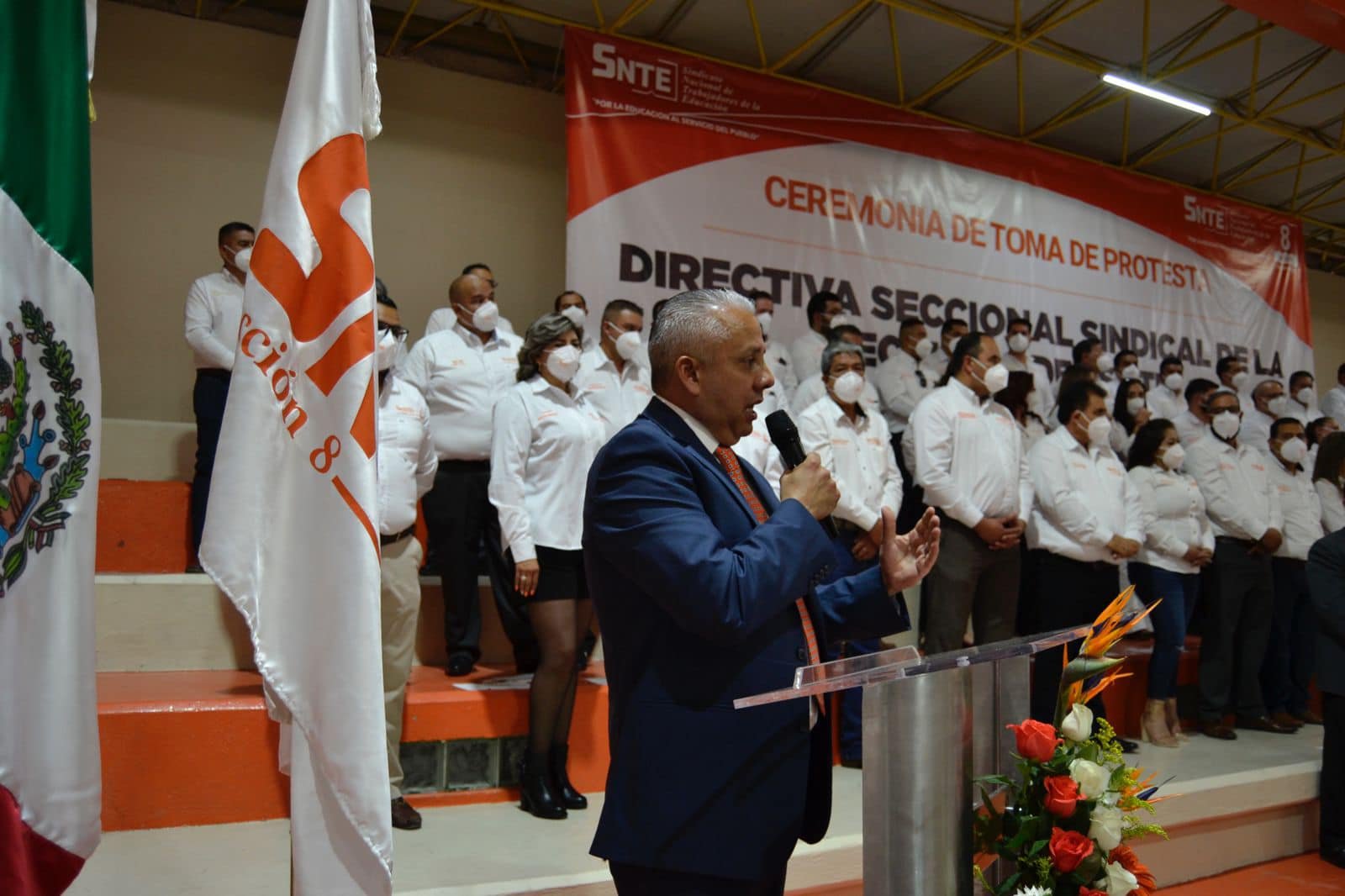 Esta mañana ante la presencia de trabajadores de la educación, pensionados y jubilados de las 15 regiones sindicales y ex secretarios generales, se llevó a cabo la toma de protesta de la Directiva Seccional Sindical encabezada por el Prof. Eduardo Antonio Zendejas Amparán, Secretario General de la Sección 8 del SNTE.