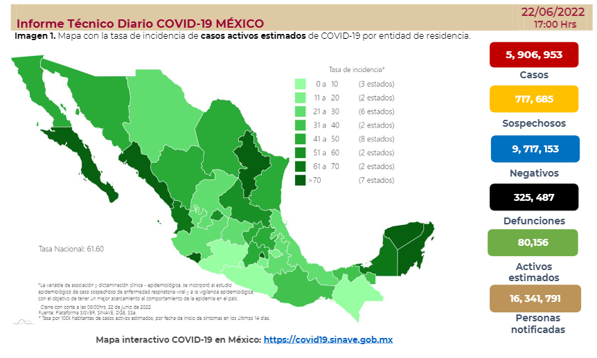 Hoy por #COVID19 en #México se registran 325 mil 487 defunciones (29 más que ayer) 5 millones 906 mil 953 contagios (15 mil 364 más que ayer), incremento de contagios en la CDMX.