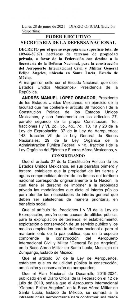 Nacional AMLO se expropió 109 Hectáreas para el Aeropuerto Internacional, copia fiel de los neoliberales. 2 min de lectura