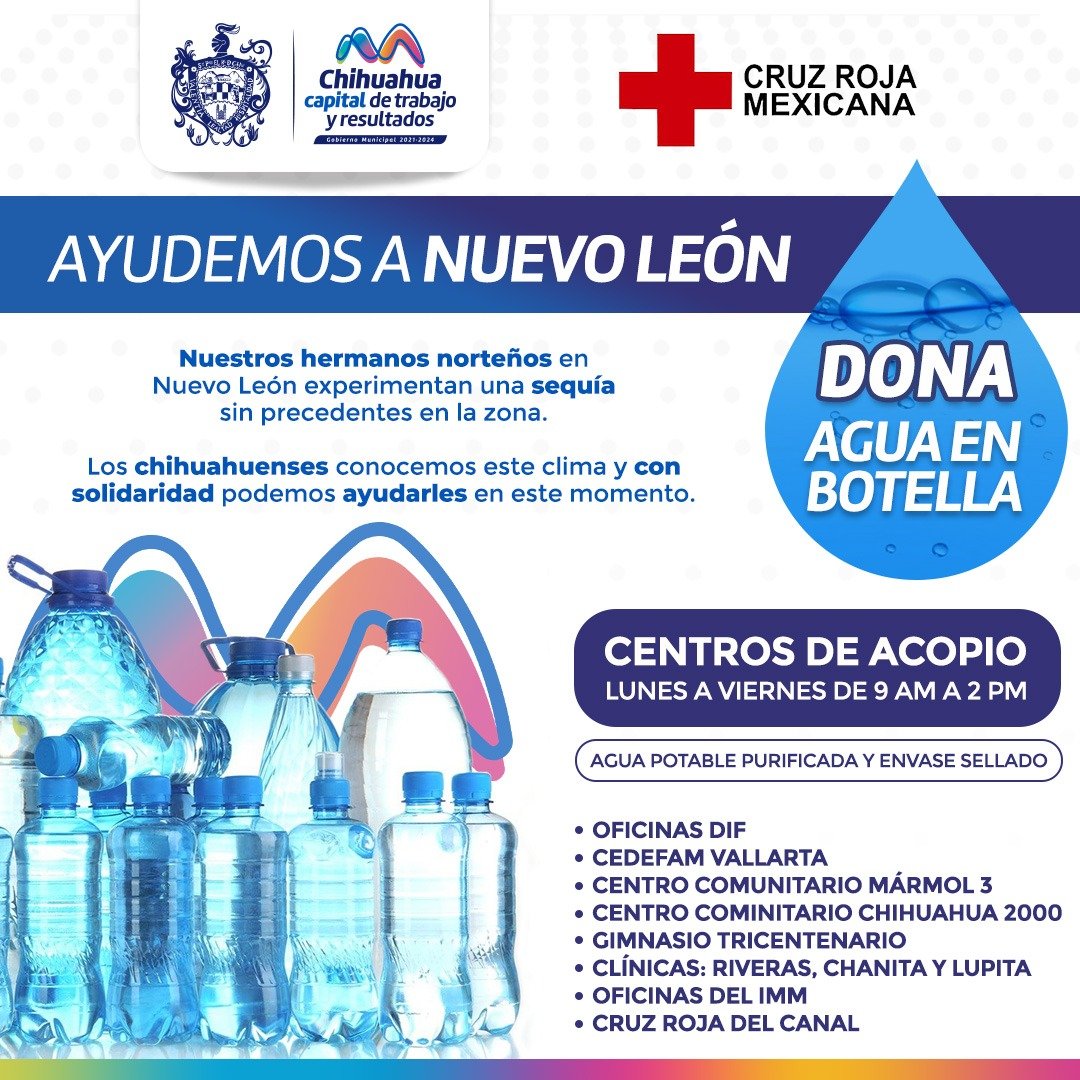 Estatal Invita Gobierno Municipal y Cruz Roja a sumarse a colecta de agua embotellada en apoyo a Nuevo León 1 min de lectura