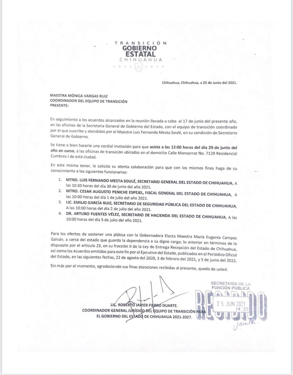 Estatal Solicita la Gobernadora Electa Maru Campos a través de Roberto Fierro, asistencia de funcionarios del Gobierno Estatal a las reuniones de la agenda de transición 2 min de lectura